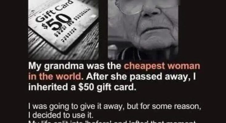 My grandma was known for being incredibly careful with money. She believed every penny mattered, and growing up, I used to laugh about how she saved receipts, reused jars, and watched for every sale. When she passed away, among her belongings, I received a $50 gift card she had tucked inside an envelope with my name written in her neat, familiar handwriting.
